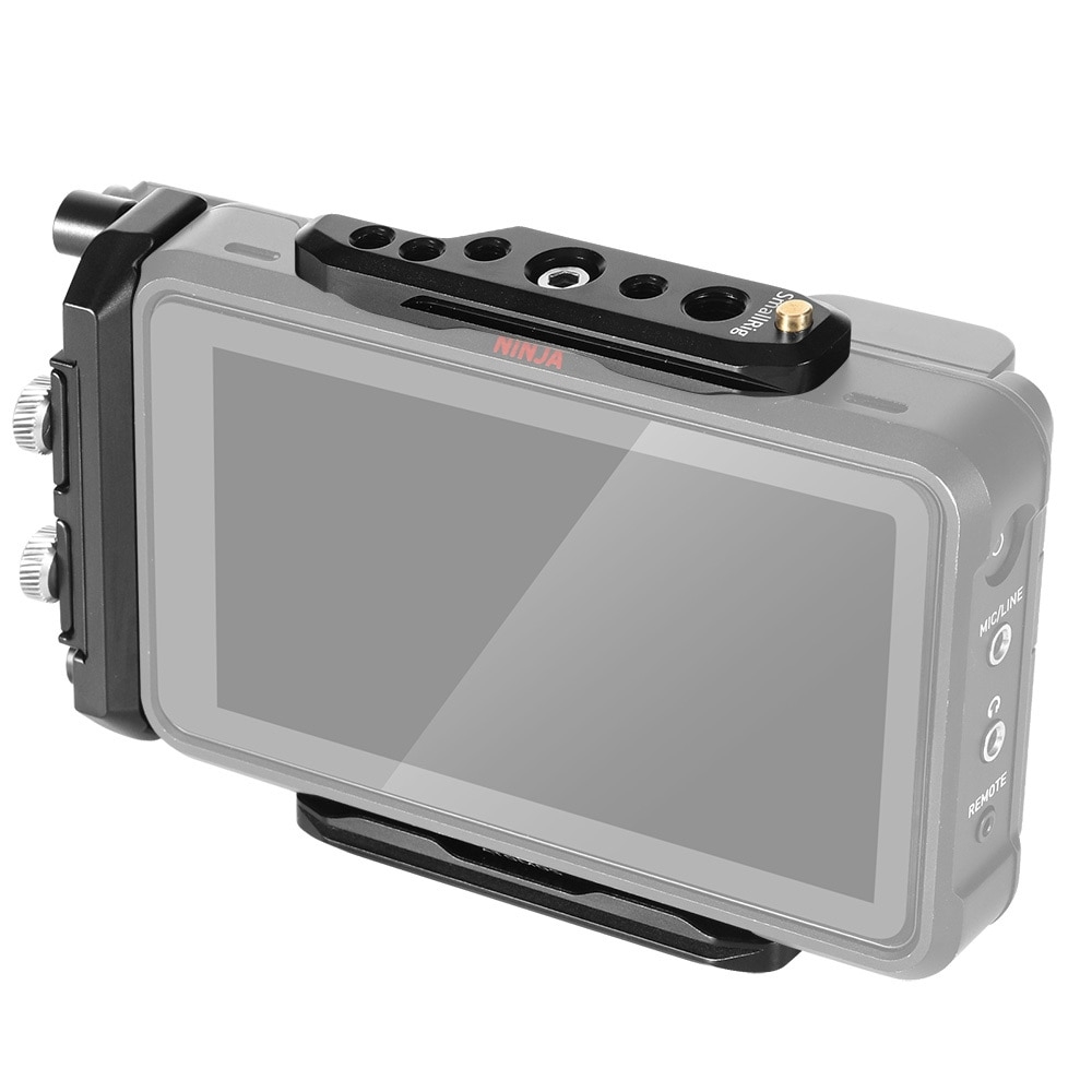 SmallRig Cage for Atomos Ninja V / Ninja V plus / Ninja / Ninja Ultra CMA2209 was co-designed with Atomos to provide an additional protective exo-skeleton for the monitor, with a wide range of industry standard mount points. The cage mounts to the monitor by a 1/4″-20 screw on the top and two M3 screws on the left side. Across the top and bottom the cage features multiple 1/4″-20, 3/8″-16 holes, and an ARRI locating mount point on the base. NATO rails are also provided along on both top and bottom to allow use with a range of SmallRig mounts such as SmallRig Ball Head Magic Arm 2071B for quick release. The cage includes a single HDMI cable clamp that works with a range of cables and is ideal for the AtomFlex 4k 60p cables. If required, the cage supports the use of a second SmallRig HDMI Cable Clamp 1693 for the HDMI output. It is attached on the left to protect the HDMI cable and port. For backwards compatibility with Atomos Master Caddy II, the cage also features Drive locks that incorporate the additional size of standard 2.5″drives into the cage’s form factor. It features raised attachment points on both the top and bottom of the cage for use with neck straps and to accommodate the Atomos Ninja V / Ninja V plus / Ninja / Ninja Ultra Sunhood frame.