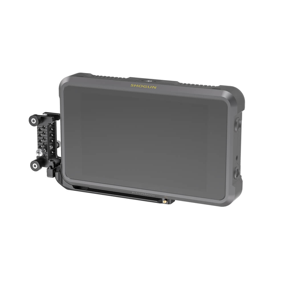 SmallRig Cage Kit and Sunhood for Atomos Shogun 7 CMA2409 provides an additional protective exo-skeleton for the monitor. The cage mounts to the monitor by two 1/4’’-20 screws on the top and bottom. Across the cage features multiple 1/4’’-20, 3/8’’-16 holes, and ARRI locating holes allowing mount of accessories, such as SmallRig V-mount Battery Plate 1846 and SmallRig Mounting Bracket for Teradek 2107. NATO rails are also provided along both top and bottom to allow use with a range of SmallRig mounts such as SmallRig Ball Head Magic Arm 2071 or the 2072 for quick release. The cage includes a cable clamp that works with a range of HDMI cables. It is attached on the left to protect the HDMI cables and ports. The cage also features a drive lock that prevents the SSD on the back from accidentally falling off. In addition, it comes with a sun hood which helps provide great viewing experience in harsh lights, and attachment points for use with neck straps.