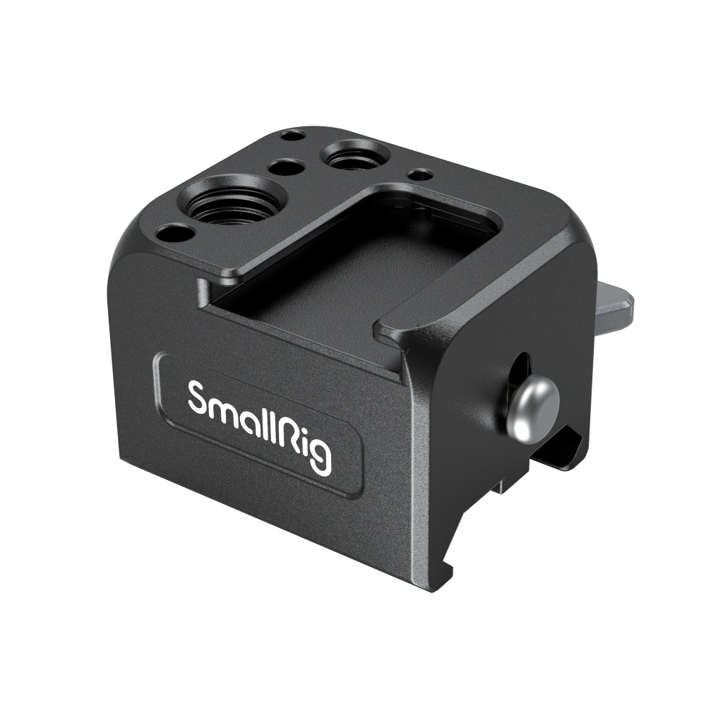 המתאם כולל שני ברגים בקוטר 1/4-20 כדי להתקין את החלק הנקבי לצד הכלוב או מתאם בצורת L של המצלמה כדי להגן על יציאת המצלמה ולהבטיח חיבור יציב יותר.